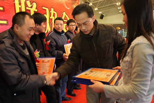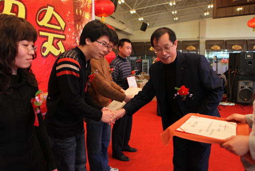 董事長(zhǎng)章榮會(huì)先生為十大標(biāo)兵頒獎(jiǎng)