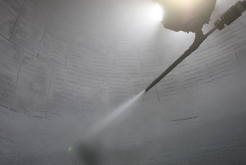 2011年3月23日,北京聯(lián)合榮大公司噴涂工程部二隊(duì)組織了此次工程,從23日13點(diǎn)至24日早8點(diǎn),其間除配合甲方檢查爐型停止4小時(shí)左右,其他時(shí)間一直連續(xù)噴注,此次實(shí)際噴注時(shí)間15小時(shí),噴注材料量115噸,平均噴注8噸/小時(shí)。