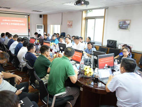2017年7月8日,聯(lián)合榮大集團在北京總部召開2017年度上半年經(jīng)營工作會議。會議全面分析總結(jié)了2017年上半年取得的成績和存在的不足,研究和部署了2016年下半年經(jīng)營計劃,并對集團整體發(fā)展戰(zhàn)略、鐵溝項目管理及大面料產(chǎn)品等進行了專題研討,為下半年工作指明了方向。會議由集團行政總監(jiān)段建軍主持,與會代表分別聽取了集團財務(wù)報告、各公司工作報告及集團工作報告,最后集團總裁徐吉龍、董事長章榮會分別做了總結(jié)性點評。