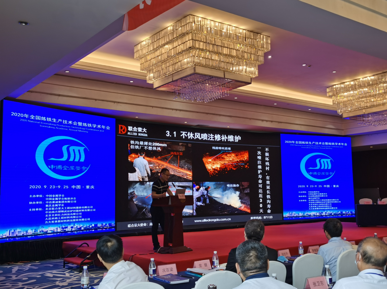 在大會上,聯(lián)合榮大派青年技術(shù)骨干孫賽陽做了題目為《煉鐵系統(tǒng)耐火材料最新進(jìn)展》學(xué)術(shù)報(bào)告,針對聯(lián)合榮大企業(yè)集團(tuán)近幾年圍繞煉鐵系統(tǒng)自主研發(fā)的高爐本體檢修技術(shù)、金屬陶瓷預(yù)掛渣皮技術(shù)、高爐爐前耐材新技術(shù)、高爐系統(tǒng)耐磨料技術(shù)、出鐵場鋼化平臺設(shè)計(jì)與優(yōu)化等新產(chǎn)品和新技術(shù)做了分享,并在大會上引起強(qiáng)烈反響。