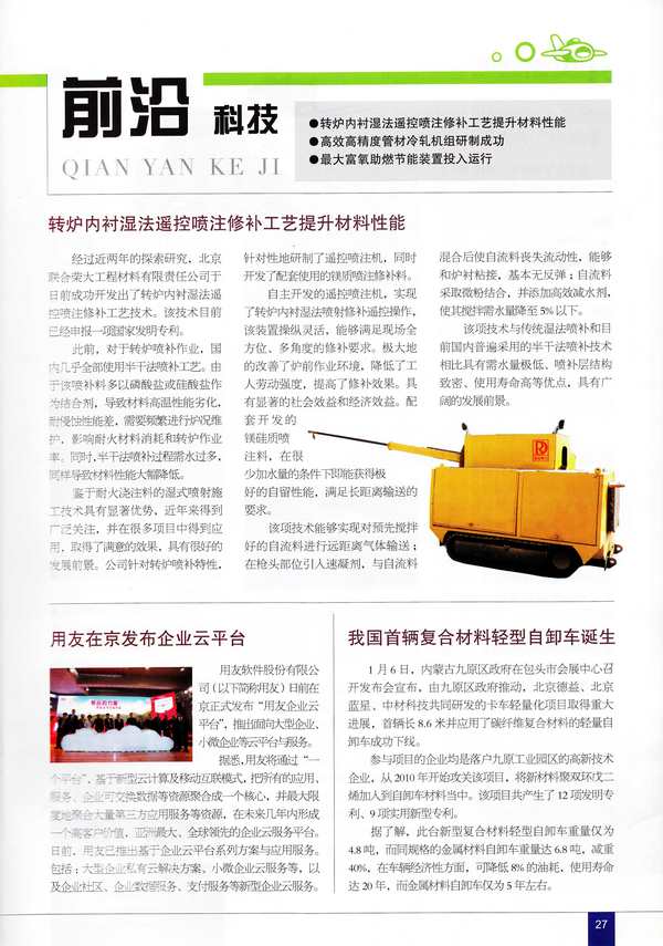 經(jīng)過近兩年的探索研究,北京聯(lián)合榮大工程材料有限責(zé)任公司日前成功開發(fā)出了轉(zhuǎn)爐內(nèi)襯濕法遙控噴注修補(bǔ)工藝技術(shù)。該技術(shù)目前已經(jīng)申報(bào)一項(xiàng)國(guó)家發(fā)明專利。